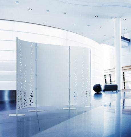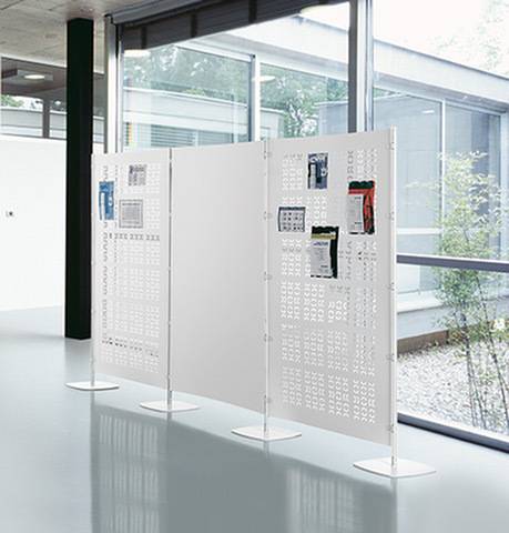 Arianna est un système modulaire avec des partitions flexibles. Les panneaux sont fixés aux poteaux avec des vis qui facilitent l'installation et le retrait rapide du panneau.