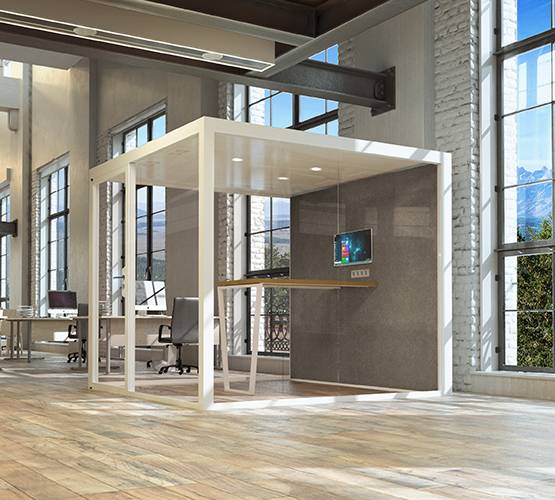 Encombrement minimal, structure indépendante, autoportantes et traitées acoustiquement, les Box acoustiques myO sont pensées design et techniques à la fois pour répondre aux besoins de nouvelles structurations de l’espace dans l'aménagement d'espaces de travail.