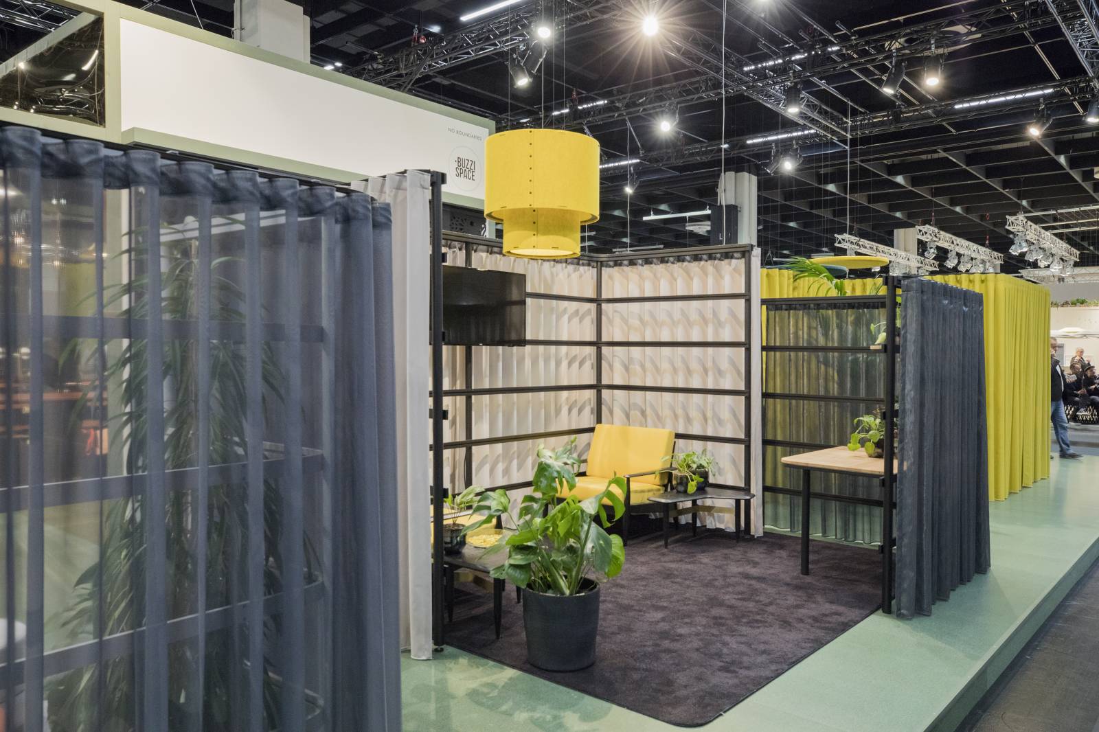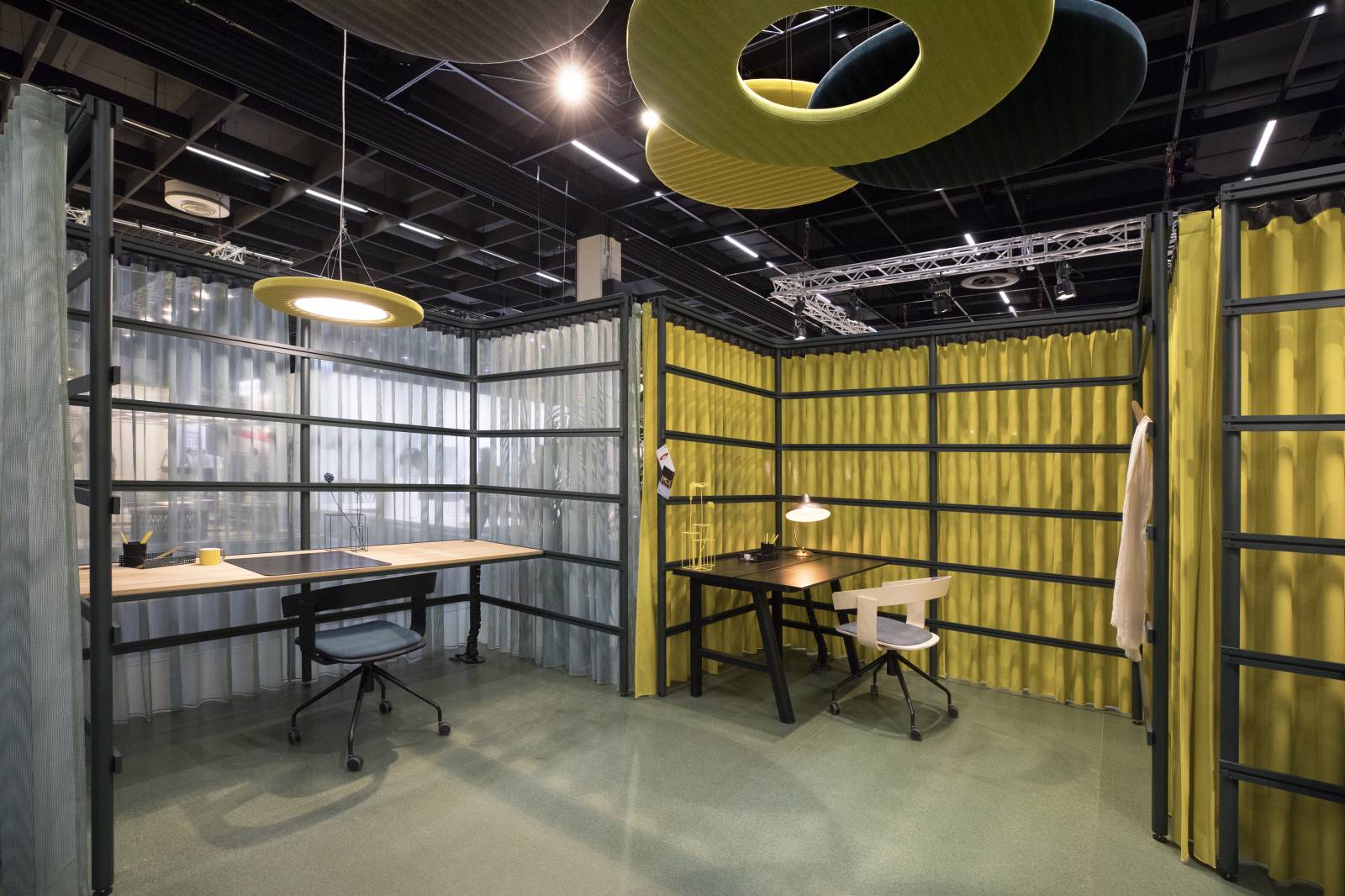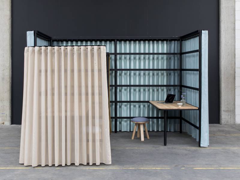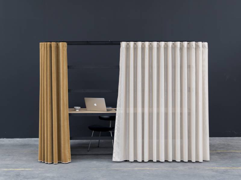 Les rideaux, disponibles dans une large palette de couleurs, agissent comme un bouclier visuel et acoustique vis-à-vis de l’environnement, séparant une zone de l’autre. Combinez des rideaux transparents avec des rideaux non transparents et ouvrez-les ou fermez-les au besoin pour plus d'intimité. Soyez votre propre architecte et créez et recréez en permanence des micro-environnements au sein d'espaces de travail ouverts.