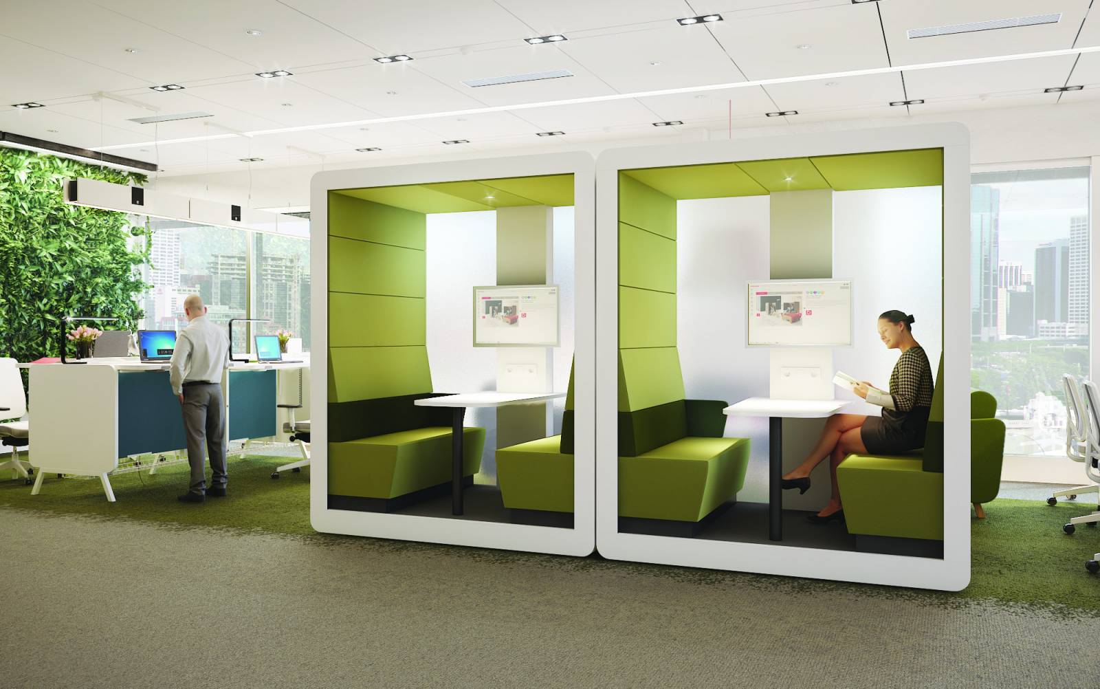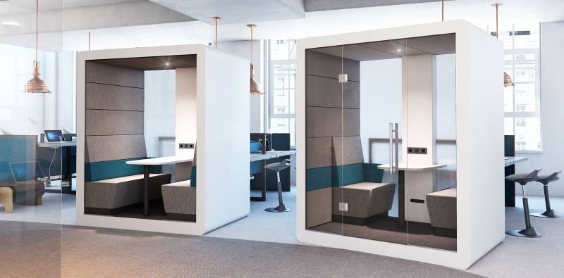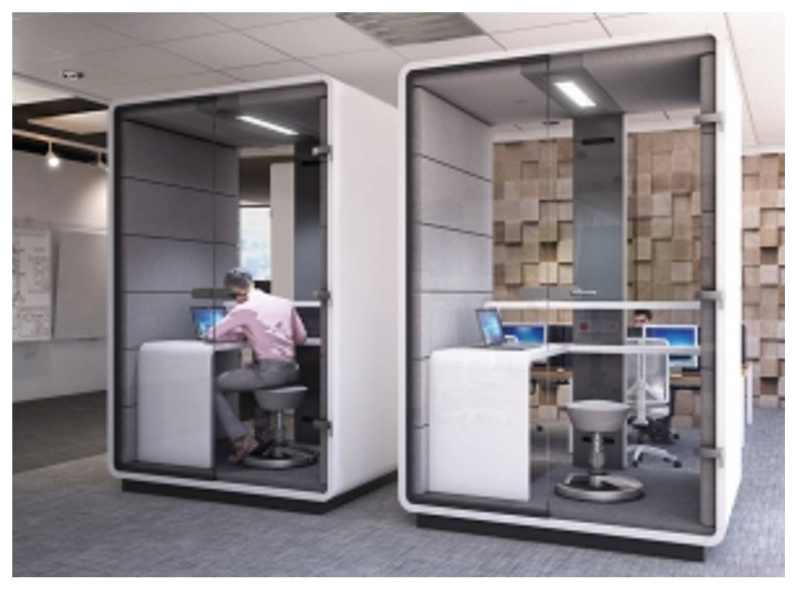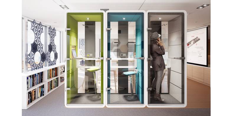 Le système HUSH est facile à réarranger, solution prête à créer des mini-zones dédiées à différents objectifs. Il permet l'isolation acoustique dans un espace ouvert, ce qui est propice aux réunions privées, aux conversations téléphoniques ou aux vidéoconférences. Le principal avantage de HUSH est