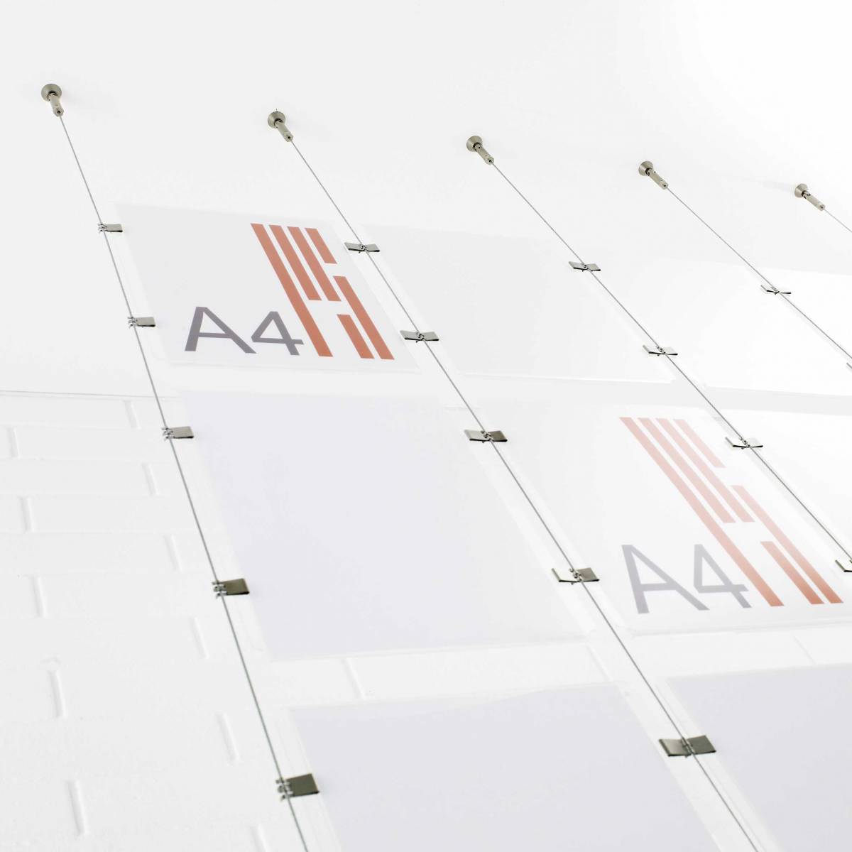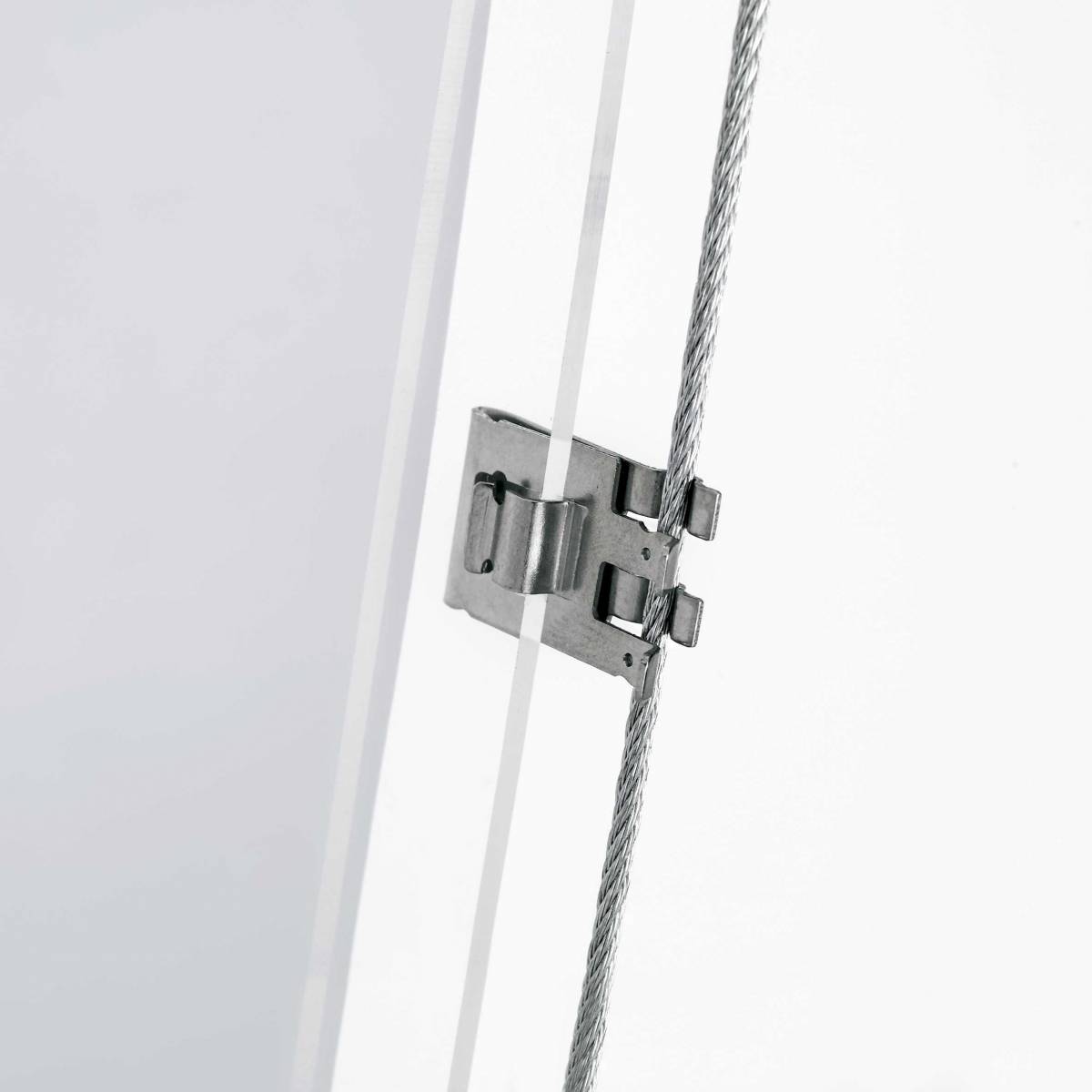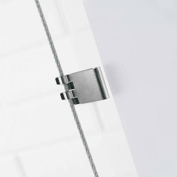 Système de câbles et tendeurs E-clip avec dossiers en méthacrylate transparent avec le nouveau système E-clip qui permet d’échanger et de monter / descendre des soins sans outils et en quelques secondes.