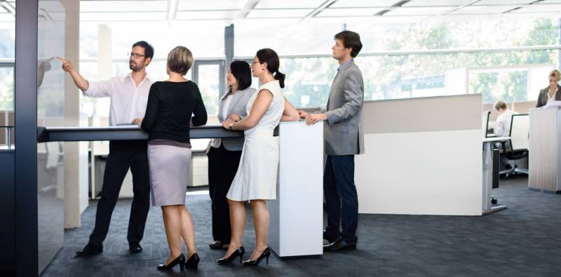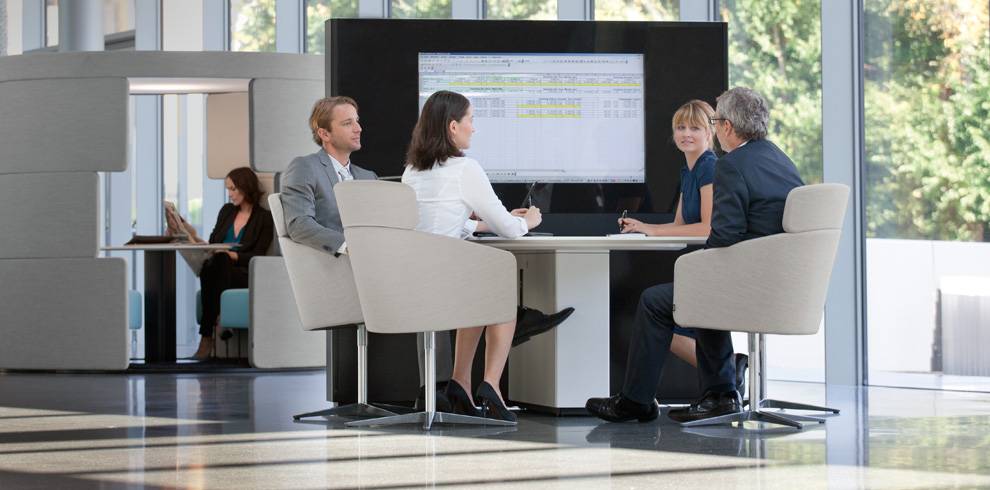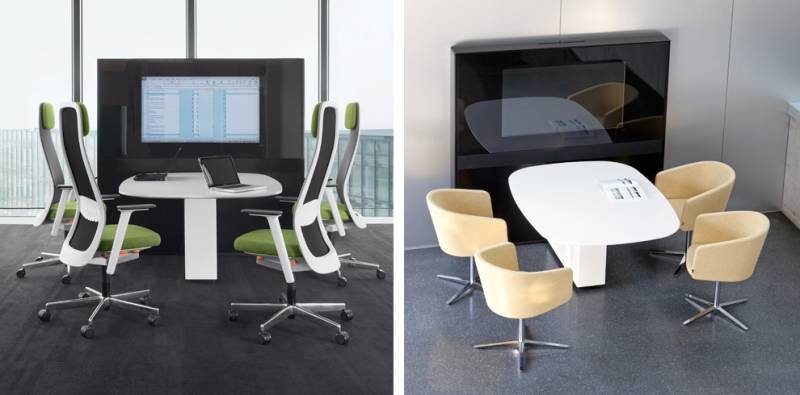 L’Idea Wall constitue un Espace collaboratif pour les présentations et le travail collaboratif où le multimédia est intégré. L’Idea Wall est un élément mural autoportant qui dispose de toute la technologie multimédia. Il permet en outre de structurer l‘espace de manière intelligente – comme par exemple dans les bureaux en espace ouvert ou des espaces pour obtenir des petites niches de réunion.