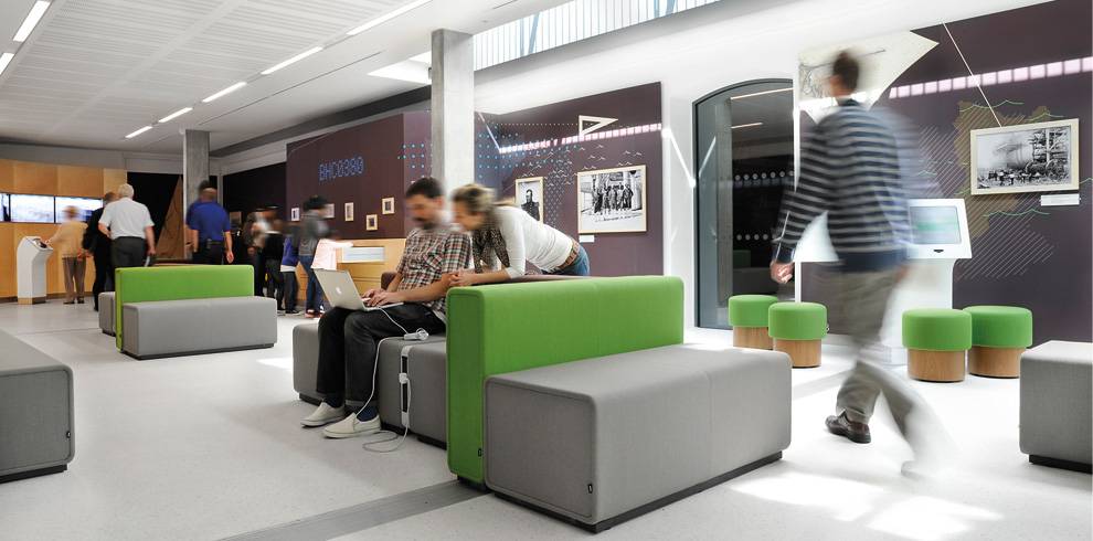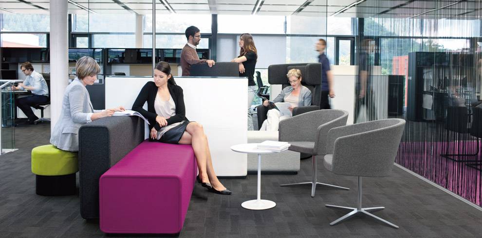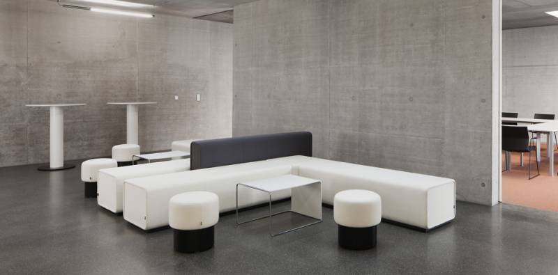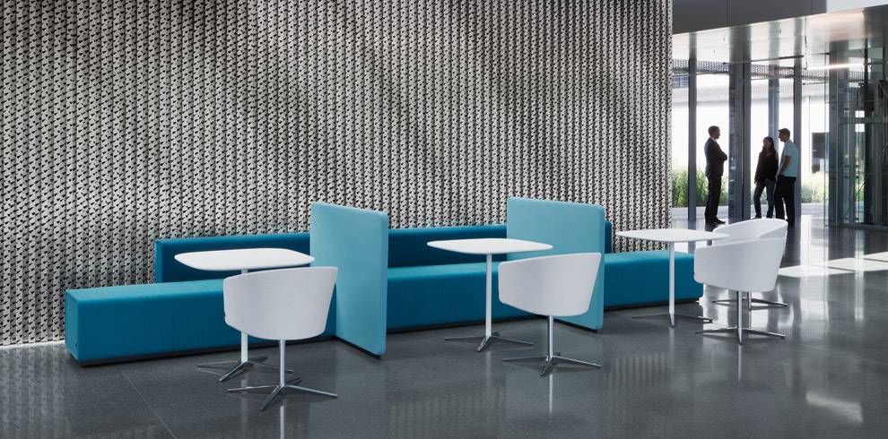 Espace collaboratif permet une vaste variété de combinaisons et une grande liberté d’aménagement intérieur. Les modules verticaux structurent l’espace et permettent de travailler de manière concentrée, sans être dérangé. Les différentes hauteurs des éléments Causeway incitent l‘utilisateur à changer de position : assis, debout, adossé – et confèrent une flexibilité ergonomique.