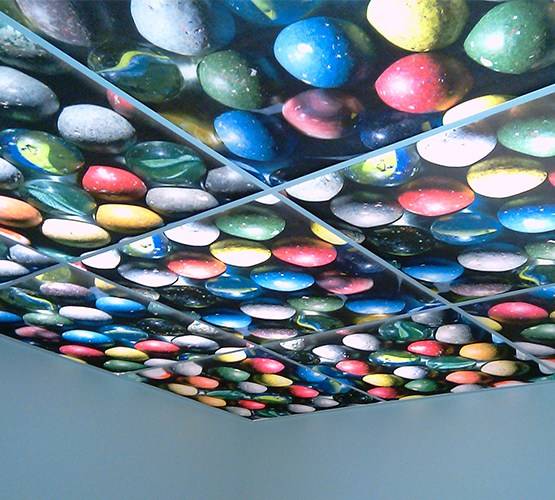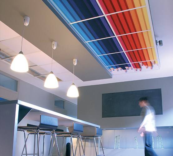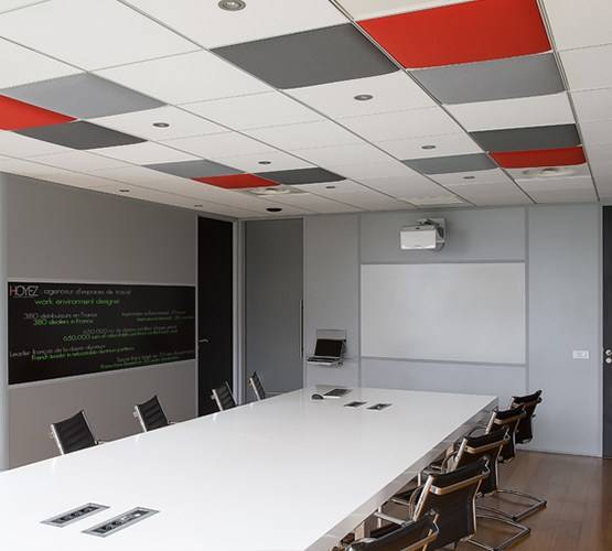 La dalle acoustique Quieto permet toutes les fantaisies. Mélange de coloris vitaminés pour amener de l'originalité, coloris neutres pour plus de discrétion, ou dalles imprimées pour un rendu unique.