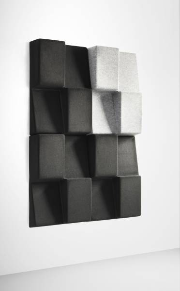 Le feutre moulé constitue la base de produit. Le matériau est recyclable, insonorisant, léger et durable. Window est à la fois disponible en tant que support et en tant qu'une unité de module mural. Le support est composé de blanc ou de noir MDF laqué et est équipé de pieds réglables.